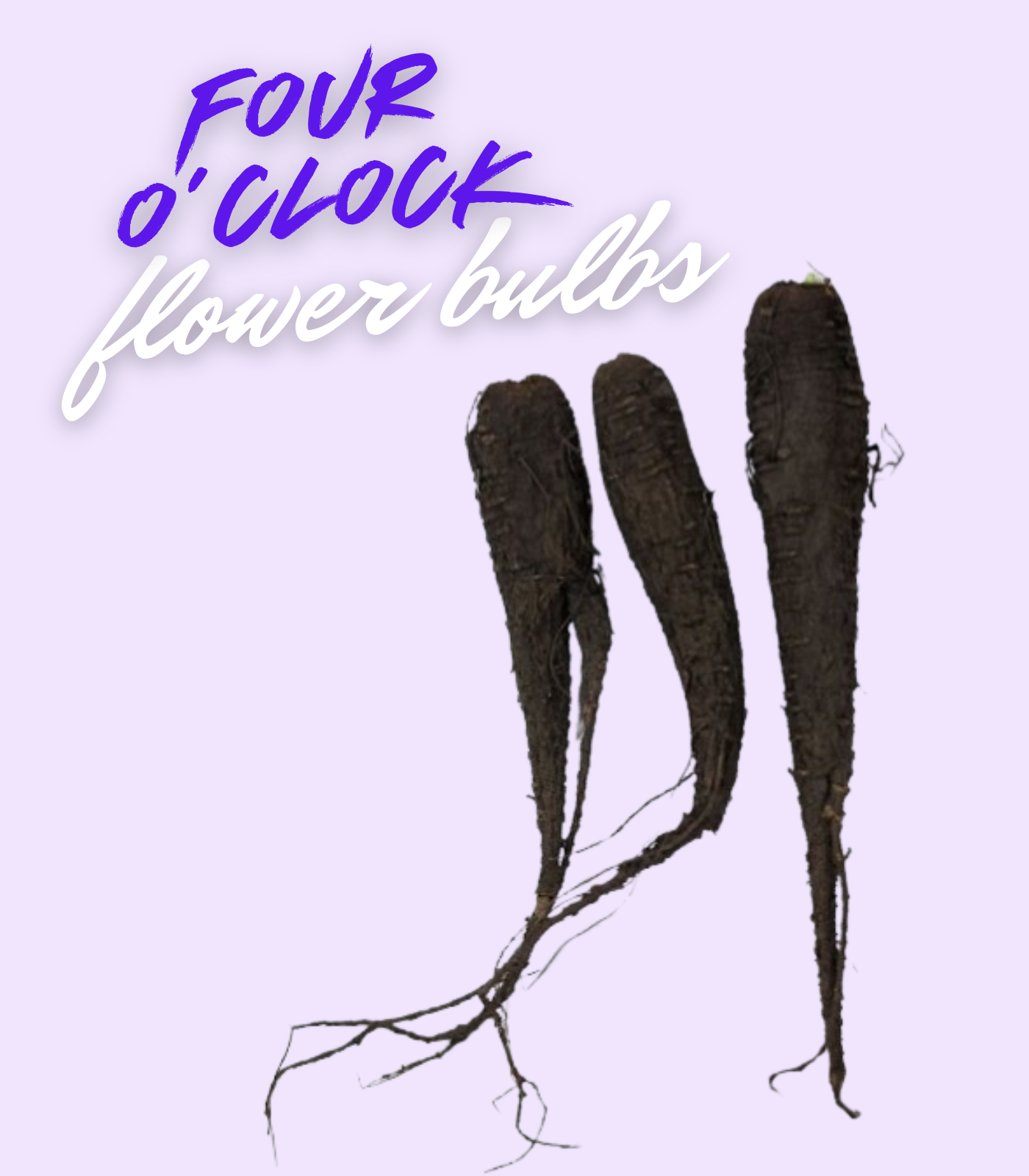 Four O’Clock (Mirabilis jalapa) is a fragrant spring-planted tuberous root known for its trumpet-shaped flowers in mixed colors of red, pink, yellow, white, and bi-colors that open in late afternoon and evening, filling gardens with sweet perfume. Throughout summer to fall, these charming blooms appear on bushy plants with lush green foliage.
